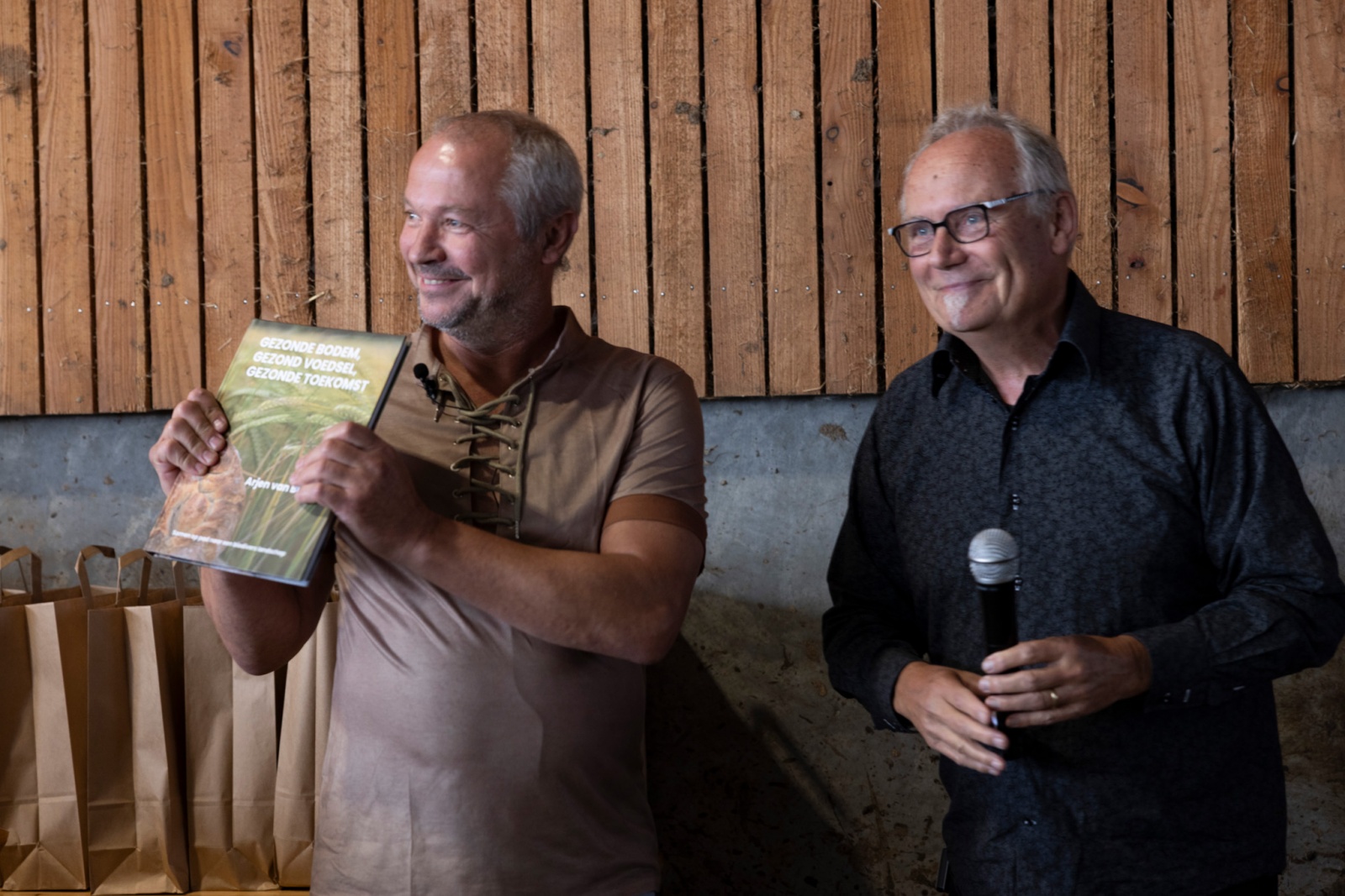 31 augustus was de boekpresentatie op Landgoed Velhorst. Arjen mocht daar voor het eerst zijn boek "Gezonde bodem, gezond voedsel, gezonde toekomst" presenteren. Maar liefst 150 mensen waren aanwezig om samen dit heugelijke feit te vieren. Het eerste boek werd uitgereikt aan Dinie en Joop van Buuren, Arjens ouders, van wie hij de liefde voor de natuur heeft meegekregen. Je kunt het boek bestellen op de website.